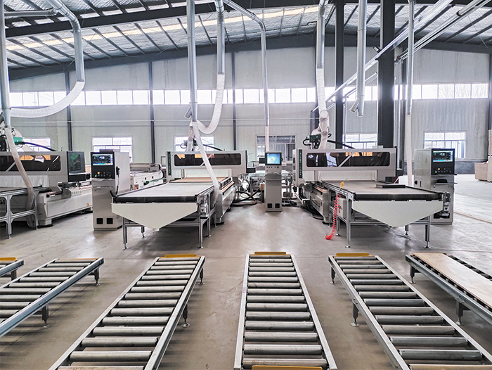 3,同一訂單可以快速推進(jìn),中控系統(tǒng)自動分配板材進(jìn)入可加工工位,有效推進(jìn)同批次同訂單同花色板材依次加工。