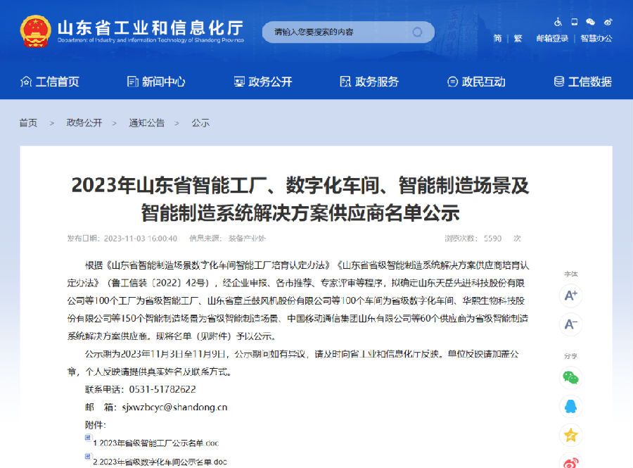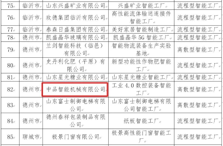 2023年11月3日,山東省工業(yè)和信息化廳公布了2023年山東省智能工廠、數(shù)字化車間、智能制造場景及智能制造系統(tǒng)解決方案供應(yīng)商名單,中品智能機(jī)械有限公司工業(yè)4.0數(shù)控裝備智能工廠入選2023年山東省智能工廠名單。
